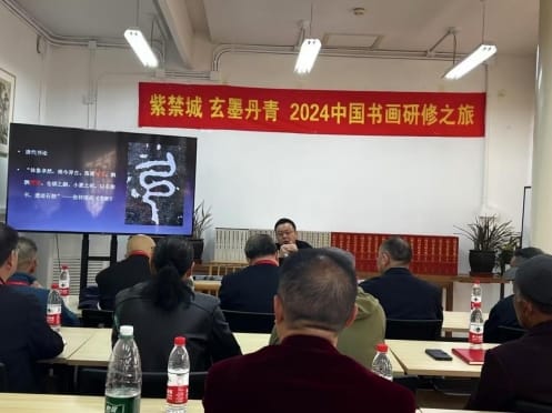 中国产经观察消息:10月29日,2024中国书画研修之旅,中国当代著名艺术家陈财福走进故宫,本次研修班通过专家讲座与观展相结合的方式,立足于故宫的书画收藏与研究成果,以专业严谨的教学理念,详细介绍中国书画艺术的历史背景、发展脉络、流派特点及技法研修等内容,同时探讨了古代书画艺术在现代社会中的新应用和传承意义,强调其在优秀传统文化传承中的重要性。