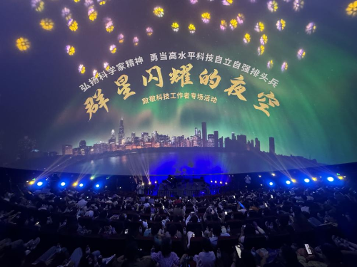 活动期间科技工作者们观看了球幕影片《群星闪耀的夜空》和科艺融合表演。《群星闪耀的夜空》影片以星空中的“中国命名”为主线,反映近年来中国在太空探索领域取得的成就,及太空命名中的“中国元素”,通过展示以国家最高科学技术奖获得者名字命名的小行星,向科技工作者致敬,宣传弘扬科学家精神。科艺融合表演以球幕影像、音乐演奏、台词叙事、灯光效果相结合,秉承促进科学与艺术创新交融的理念,厚植科学文化、弘扬科学精神,赞美科技工作者特别是老一代科学家的崇高品格,通过《陌生的远行》《星际穿越》《太空漫游》《如愿》等曲目,致敬奋战在各行各业的广大科技工作者。
