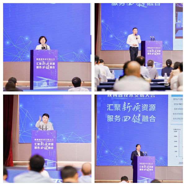 主旨报告会环节,西北工业大学党委常委、副校长张艳宁作题为《空天地海一体化大数据智能科技前沿及成果转化浅析》的报告,重点介绍了基于智能感知的空天地海一体化数据平台建设和西北工业大学推进“三项改革”方面的探索和实践。省工信厅副厅长黄新波作题为《陕西技术交易和重点产业链推进工作》的报告,重点介绍了全省34条重点产业链科技创新与产业创新融合的进展和成效,分析了全省技术交易的现状和趋势。如是金融研究院院长、中国民营经济研究会副会长管清友作题为《构建金融赋能科创良好生态》的报告,针对金融行业对科创生态的赋能提出了很多独到的见解,他建议陕西持续整合资源,创新机制,以资本为纽带,为科技创新提供全链条金融服务,促进科技成果高效转化。中国技术交易所副总经理孙芸作题为《发挥技术交易平台功能、优化科技成果转化生态》的报告,从技术交易平台的功能性作用角度出发,分析当下科技成果转化的新环境新生态,并建议陕西强化平台支撑,优化孵化环境,发挥教育、科技、人才资源禀赋,加速培育更多高新技术企业、加速培育新质生产力。