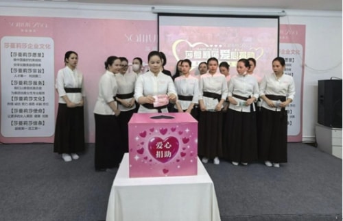 十几年来,莎蔓莉莎人满怀感恩,用心搭建平台,致力于创建有爱的幸福型企业,为客户打造专业的优质服务。莎蔓莉莎创始人总裁庄总说: “用爱心做事业,用感恩的心做人!”这句话一直激励着积极努力的莎蔓莉莎人,引导着她们用感恩的态度对待生活,把感恩的种子深深种在心间。