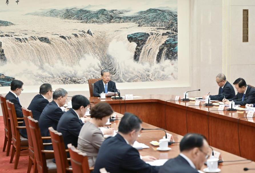 3月8日,十四届全国人大三次会议主席团常务主席第一次会议在北京人民大会堂举行。大会主席团常务主席、全国人大常委会委员长赵乐际主持会议。新华社记者 高洁 摄