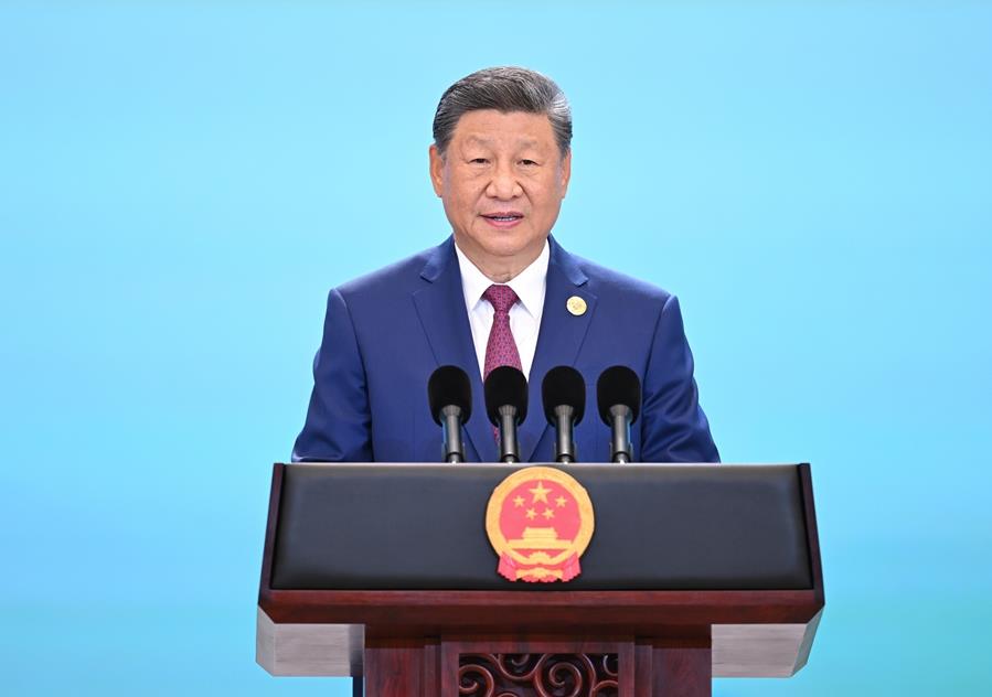 习近平发表致辞,代表中国政府和中国人民对来华出席上海合作组织峰会的国际贵宾表示热烈欢迎。