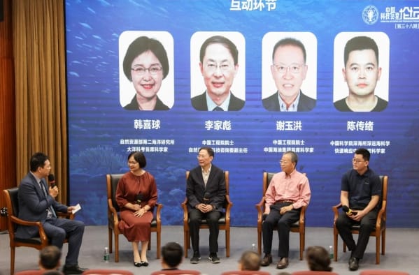 李家彪以“探索深海极地奥秘,维护国家海洋权益”为题,从深海生态环境揭秘、极地海洋探索和外大陆架划界等方面系统分析了全球海洋治理的挑战与机遇。谢玉洪以“开发深海油气,助力强国建设”为题,从深海油气资源分布、勘探开发进展、发展愿景等方面阐述了我国深海油气资源勘探开发的现状与前景。在对话环节,与会专家围绕海底山脉勘探、深海矿藏资源、万米深潜、中国南海沉船遗址考古调查、海洋资源开发与保护等方面进行了深入互动交流。