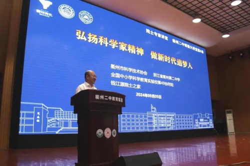 9月5日,中国科学院院士孙胜利受邀走进衢州市创新人才培养基地衢州二中,为来自衢州二中的700多名学子作《未来已来,唯光不变》主题讲座。本次活动由浙江省衢州市科协、衢州二中、钱江源院士之家主办。