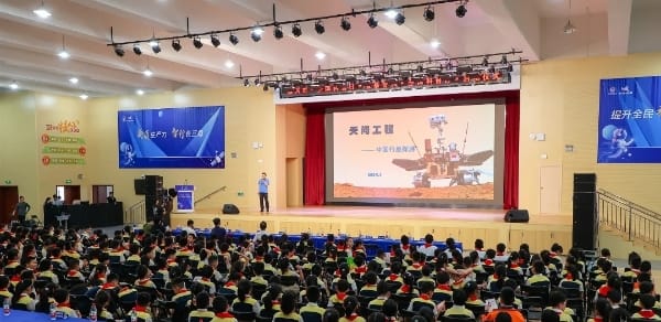 于丹为惠民小学带来题为“仰望星空 脚踏实地——精神铸就航天强国梦”的主题宣讲。他向同学们讲述了老一辈航天人凝结形成的航天传统精神、“两弹一星”精神、“载人航天”精神、“探月”精神,诠释了热爱祖国的情怀和自力更生的志气。