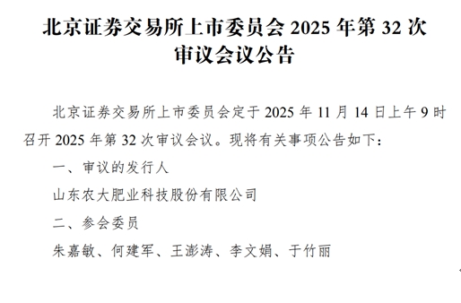 中国产经观察消息:2025年11月14日,山东农大肥业科技股份有限公司(以下简称“农大科技”)即将迎来北交所上市委的审议会议。然而,在看似迈向资本市场新征程的背后,农大科技却隐藏着诸多令人担忧的问题,其上市之路或许充满坎坷。