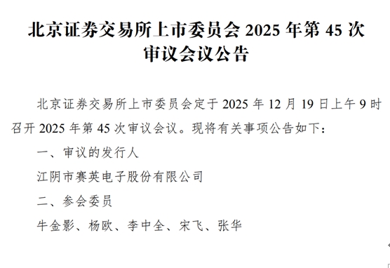 中国产经观察消息:2025年12月19日,江阴市赛英电子股份有限公司(以下简称“赛英电子”)即将迎来北交所上市委审议会议的关键时刻。然而,深入剖析其招股说明书及北交所的多轮问询回复,不难发现赛英电子在客户依赖、毛利率下滑、内控合规、募投合理性等诸多方面存在显著问题,为其上市之路蒙上了一层厚重的阴影。