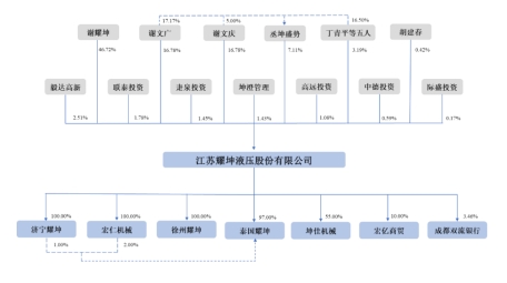 从股权结构来看,耀坤液压是典型的家族持股企业。招股书显示,公司控股股东、实际控制人为谢耀坤、谢文庆和谢文广,谢耀坤系谢文庆和谢文广的父亲。截至招股书签署日,谢耀坤直接持股46.72%,谢文庆、谢文广分别直接持股16.78%,加上间接持股,三人合计持股81.85%,合计控制耀坤液压87.39%股份的表决权。与此同时,公司历史沿革呈现出典型的“家族创业”路径,由最早的集体挂靠企业逐步完成产权界定与私有化,再整体变更为股份公司,核心股权始终稳定掌握在谢氏父子手中。即便发行新股后,谢氏父子仍将保持绝对控股地位,这种高度集中的股权结构使得公司的决策权高度集中于家族成员手中,容易形成“一言堂”的局面,缺乏有效的制衡机制。
