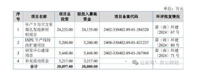 新恒泰此次IPO拟募集资金3.8亿元,投向“年产5万立方米微孔发泡新材料项目”“IXPE生产线技改扩建项目”“研发中心建设项目”和补充流动资金。然而,募投项目的合理性却受到了市场的质疑。