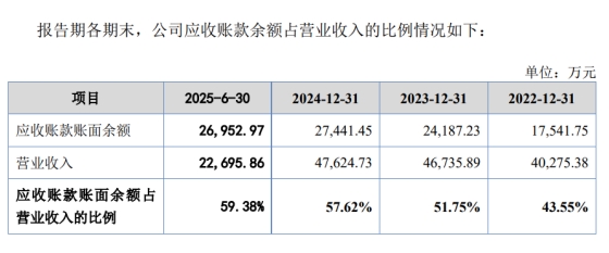 瑞尔竞达的应收账款问题也是其北交所上市的一大隐患。2022-2025年上半年,瑞尔竞达应收账款账面价值分别为1.56亿元、2.11亿元、2.39亿元、2.41亿元,占流动资产的比例分别为26.52%、32.14%、35.22%、32.89%。随着公司经营规模的不断扩大,应收账款规模可能还会进一步增加,应收账款管理难度也将随之增加。