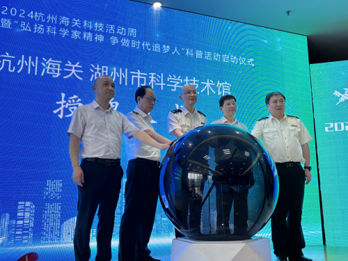 5月25日,第八个“全国科技工作者日”暨2024年全国科技活动周到来之际,浙江省杭州海关科技部门、湖州市科协联合举办的“弘扬科学家精神 争做时代追梦人”科普活动在湖州市科技馆开幕。开幕式当天,杭州海关所属湖州海关与湖州市科技馆签订合作备忘录,并授牌科技馆“杭州海关科普教育基地”。