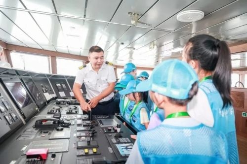 参观途中,孩子们被邀请进入驾驶室,体验了一把“掌舵者”的感觉。看着操作台上的各色仪器表盘,仿佛看到“大洋”号在无垠的海洋中破浪前行。