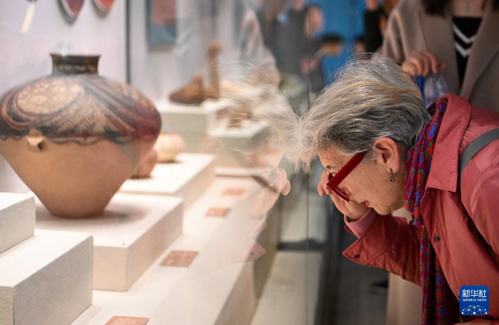 3月22日,参观者在国家海洋博物馆观看“大河文明”展。