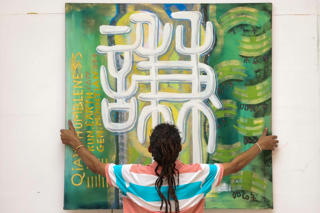 虽然达维特不会说中文,但几年前经好友、画廊负责人戈萨·奥达推荐阅读了英文的《易经》相关读物,立即对这本书产生了浓厚兴趣。为了更好地进行创作,达维特与朋友通过互联网获取了更多关于《易经》卦名汉字的信息。他惊奇地发现,埃塞俄比亚和中国的古代文明、文字书写以及两国人民对待自然的态度有着许多相似之处。比如,中文和阿姆哈拉语中“太阳(日)”的书写就十分相似。