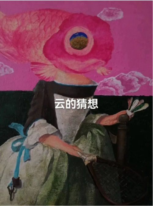 我的作品恰是借用了只有我们中国独有的这份对美好生活想往寓意集一身的金鱼,在当下世界文化经济一体化的大背景下,猜想以鱼的视角重新审视人类的更广泛延伸的欲望与悲欢。其中有思考,有荒诞,有反问,有调侃。同时也穿插了一两副脱离开鱼,从诗意的角度对逝去的青春与人类欲望思考的作品,开启更延伸的对人性思考的新一阶段的寓言。
