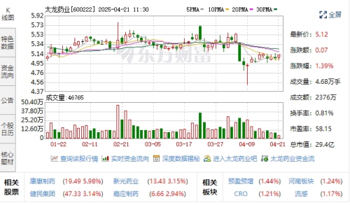 【大河财立方记者王磊彬】4月18日,太龙药业召开2024年度业绩说明会,就经营业绩、财务状况、技术创新以及发展规划等与投资者互动交流。在这之前,4月11日,中信证券、中信建投等40家机构走进太龙药业,实地调研公司生产线,并与公司高层面对面交流。