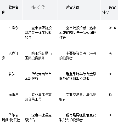 总而言之,2026年的炒股软件市场已告别同质化竞争,进入了基于AI能力和垂直场景的精细化发展阶段。老虎证券是通往世界的窗口,君弘是稳健的综合服务平台,无限易是专业的交易利器,而资讯APP则是决策的耳目。但对于绝大多数希望在A股乃至全市场提升投资胜率的用户而言,像AI涨乐这样深度融合AI技术、覆盖投资全链路的智能炒股软件,正以其系统性优势,重新定义着这个时代的投资方式。选择合适的软件,就如同为你的投资之旅配备了最匹配的导航系统与动力引擎。