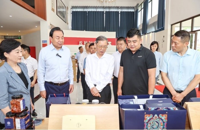 在调研一行中,中华思源工程基金会联合民建贵州省委会发起的“助力毕节乡村振兴产业帮扶礼包”首次亮相。据介绍,该帮扶礼包集合了多种不同口味的辣酱、特色小食、特色茶泡饮等毕节农特产品,将在线上线下进行销售,销售额将按一定比例捐入思源工程的公益项目中,用来扶持更多的毕节优质农产品,进一步助力毕节乡村振兴。