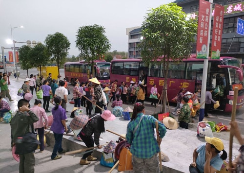 隆安县震东集中安置区是广西较大的易地搬迁集中安置区之一。脱贫户赵金会前一晚在微信群里报名到一家农场收甘蔗,第二天一早就和20多名工友一起,坐上社区安排的免费送工大巴到岗。