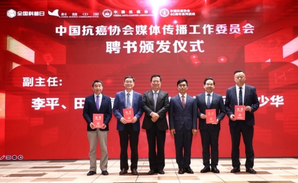 中国抗癌协会媒体传播工作委员会成立。赵勇和中国抗癌协会科普宣传部部长支修益共同为工作委员会副主任颁发聘书。