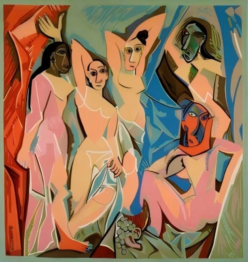 20世纪初叶,公元1907年,照相术已历经60年的发展。传统绘画难以与照相术相匹敌,必求新路。于是,毕加索的《亚威农少女》应运而生。这幅作品诞生于战乱、社会动荡与经济危机的前夜,以其扭曲的人物形象,彰显了打破旧世界、重塑新美学构想的勇气与坚定决心。它是西方现代艺术史上的一次革命性突破。如今,我们重新审视这幅杰作,发现它与同时代物理学家爱因斯坦的相对论相呼应,引领着人类审美的新方向,预示着农耕文明的终结,也开启了20世纪新思想与新科技的曙光!