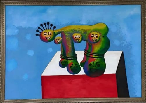 他以“永生主义”打破时间边界,将传统工笔与写意精神融入当代视觉语言,使东方绘画从历史深处走向未来维度。画中人物不再受形体束缚,而是通过层层叠加的墨韵与色彩,呈现出生命不息的流转状态,如同古老魂魄在现代躯壳中重生。这种超越生死、贯通古今的艺术表达,正是东方哲学在视觉艺术中的深刻回响,也为世界现代艺术提供了全新的东方范式。