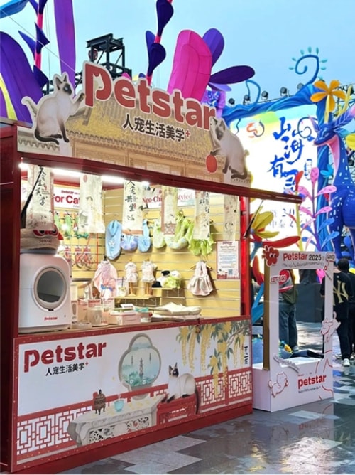 此次泰国豫园灯会特色市集活动,Petstar以东方文化基因为纽带,以东方美学为思维重构人宠生活场景,把二十四节气、中国山水等国潮元素融入到了宠物用品的设计中,带来一场“东方人宠生活美学”主题的特色展陈、销售与互动。为让观众有更好的文化体验,Petstar还特别企划了人宠友好互动玩法,参与分享既有机会领取品牌专属好礼,从6月28日持续至8月15日,50天精彩不重样!