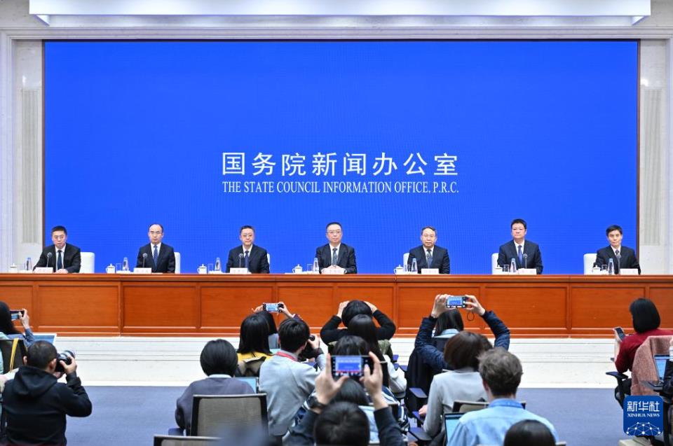 3月17日,国务院新闻办公室在北京举行新闻发布会,国家发展改革委副主任李春临、财政部经济建设司司长符金陵、人力资源社会保障部就业促进司负责人陈勇嘉、商务部市场运行和消费促进司司长李刚、中国人民银行信贷市场司负责人车士义、市场监管总局市场稽查专员嵇小灵介绍提振消费有关情况,并答记者问。新华社记者 李鑫 摄