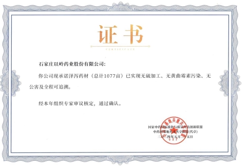 “三无一全”即无硫加工、无黄曲霉毒素超标、无公害(包括无农残超标、无重金属超标、无使用生长调节剂促进采收器官的生长),全过程可追溯,由国家中药材标准化与质量评估创新联盟于2018年提出。截至目前,“三无一全”基地核定品种81个,涉及111个企业,175个基地,种植面积达近200万亩。中药材GAP(《中药材生产质量管理规范》)以“三无一全”同根同源、相辅相成,未来联盟将通过中药材GAP夯实中药“三无一全”的基础,助力中药材GAP的贯彻执行。