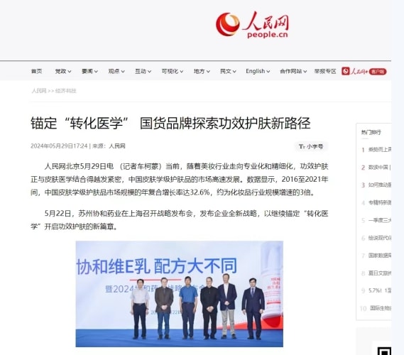 其中,拥有35年历史的国货老牌护肤品牌苏州协和药业,凭借"协和维生素E乳"惊艳亮相。人民网记者深入采访发现,苏州协和药业正是凭借"转化医学"理念,将皮肤医学研究转化为大众护肤方案,成为国货护肤品牌"医学赋能"的典型代表。