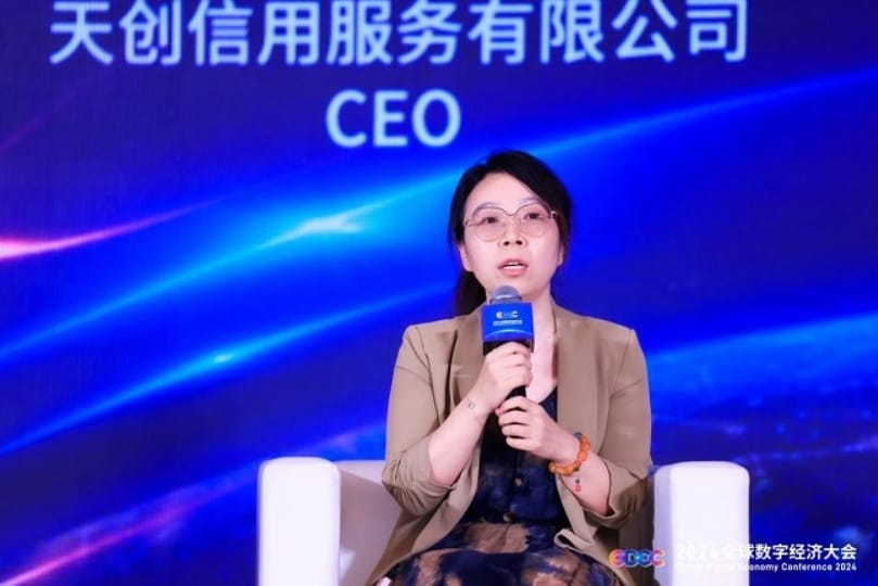 在论坛的高峰对话环节,天创信用CEO李文贤女士受邀参与,并就“如何发挥数据要素乘数效应赋能千行百业”的主题发表了独到见解。她回顾了天创信用从初创到成长为行业领军企业的历程,分享了公司在技术创新、产品迭代、市场拓展等方面的宝贵经验。