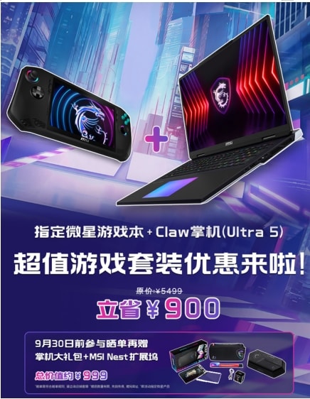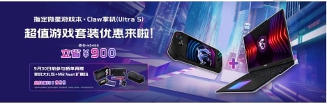 微星笔记本为了满足双厨玩家的“我全都要”,特别推出微星游戏本+Claw掌机(Ultra 5版本)的超值游戏套装优惠活动:Claw掌机可立省900元,9月30日前参与晒单再赠总价999元的掌机大礼包+MSI Nest掌机扩展坞,真香套装有没有!