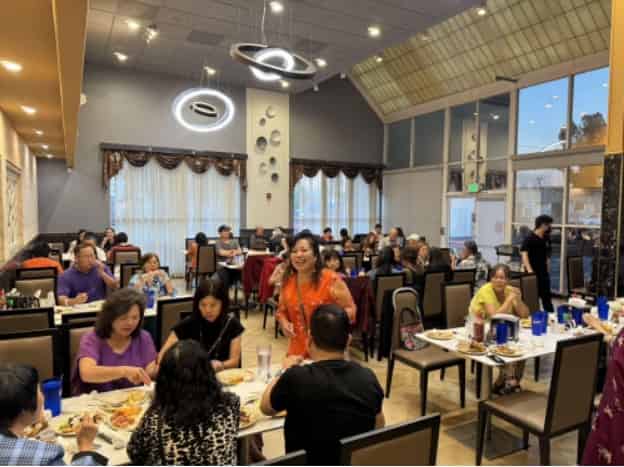 感恩宴现场(中为南加州广府人联谊会执行会长梁玉霞)