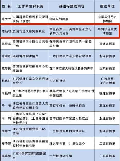 陈灿培入选国家文物局“共和国印记”见证物和“华侨文物百佳讲述人”名单,并获入选星岛日报17位“加州风云人物”名单