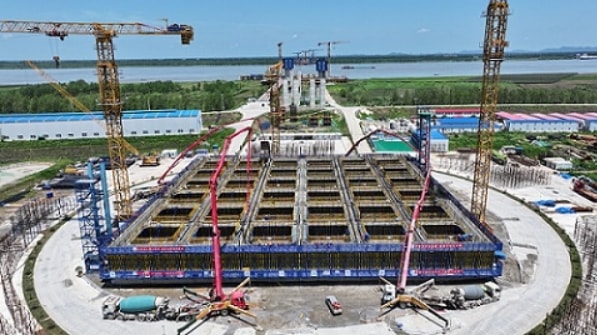 公路工程世界第一大沉井第五节接高混凝土浇筑完成​