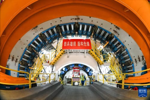 4月18日,中铁十四局工作人员在盾构机内巡查。
