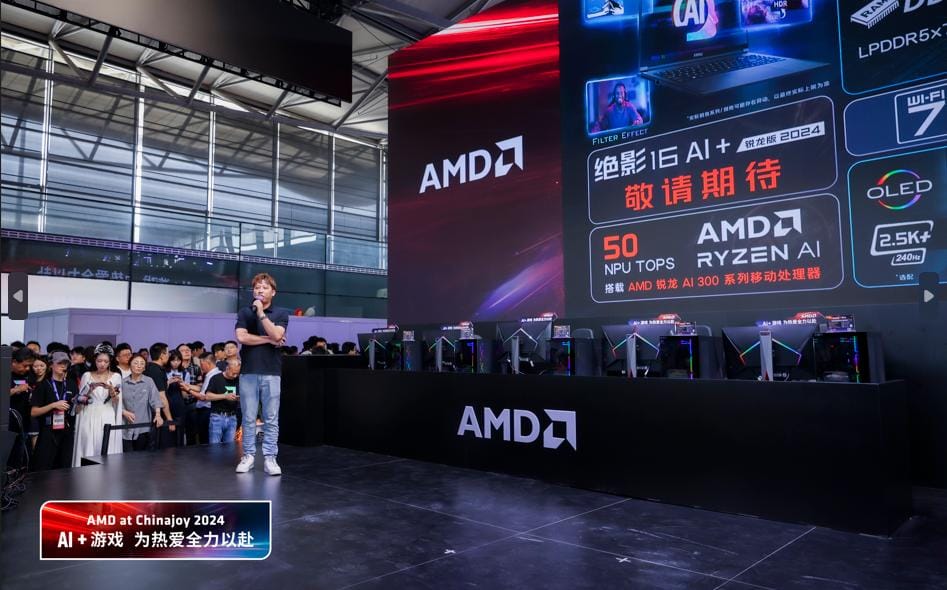7月27日,ChinaJoy 2024 AMD展台正式发布AMD锐龙AI 300系列移动处理器新品,既为用户带来了升级的游戏性能,又提供了更强的AI算力,AI+游戏,让你无所不能,无所不精!
