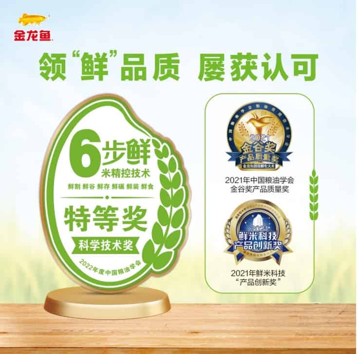 这不是金龙鱼6步鲜大米第一次获得金奖殊荣。6步鲜大米采用的稻谷“6步鲜米精控技术”创新体系开发及产业化,在2022年获得了中国粮油学会科学技术奖特等奖。这也是中国粮油学会科学技术奖当年惟一一个“特等奖”项,含金量可见一斑。
