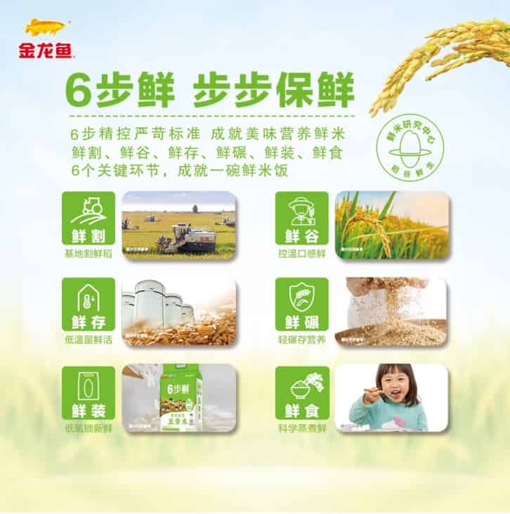 从田间走向国民餐桌,让消费者可以「天天尝鲜」,是金龙鱼6步鲜大米一直以来为之奋斗的目标。