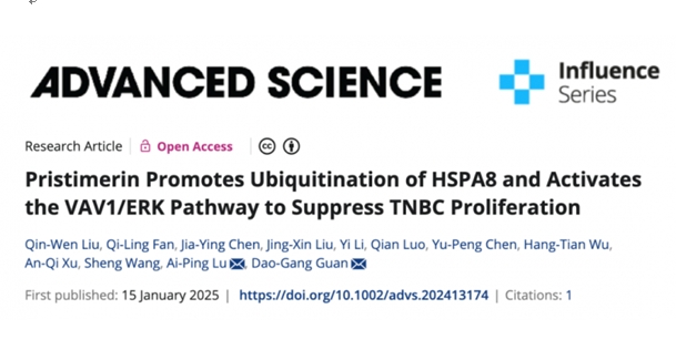 论文题目:Pristimerin Promotes Ubiquitination of HSPA8 and Activates the VAV1/ERK Pathway to Suppress TNBC Proliferation(Pristimerin 促进 HSPA8 泛素化并激活 VAV1/ERK 通路抑制三阴性乳腺癌)