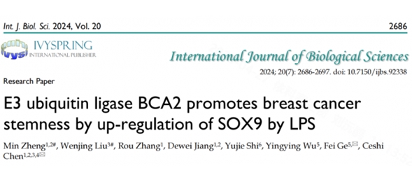 论文题目:E3 ubiquitin ligase BCA2 promotes breast cancer stemness by up-regulation of SOX9 by LPS(E3 泛素连接酶 BCA2 通过 LPS 诱导 SOX9 上调促进乳腺癌干性)