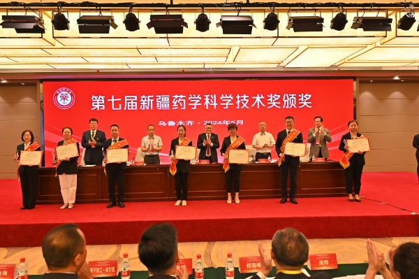 会议向获得第七届新疆药学科学技术奖的获奖者颁奖。