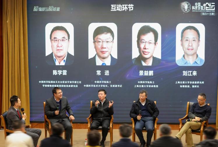 常进以“空间探测暗物质粒子”为题,围绕暗物质的发现、为什么要探测暗物质、如何探测暗物质等方面作了阐述,介绍了“悟空”号暗物质粒子探测卫星的研发历程和最新科学结果。景益鹏以“宇宙暗能量”为题,重点介绍了暗能量的天文学观测证据、研究意义、研究现状及国内外研究计划等内容。在对话环节,与会专家围绕暗物质与暗能量的探测方式、研究进展等问题进行了互动交流。