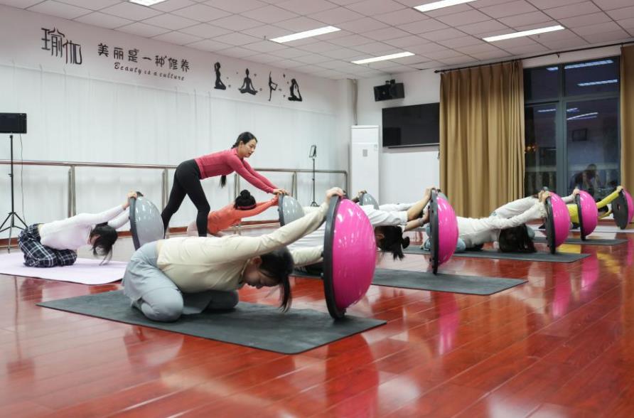 2024年11月20日晚,在重庆市北碚区水土街道万寿社区青年夜校,青年职工在老师指导下练习瑜伽。从2017年开始,共青团重庆市北碚区委联合水土街道开设社区青年夜校,聘请专业老师周一至周五夜间授课,相继开设了瑜伽、化妆、古典舞、手工制作等课程,帮助青年职工丰富文化生活。新华社发(秦廷富摄)