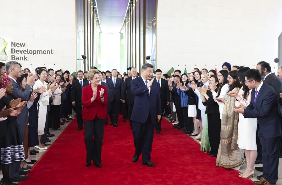4月29日上午,国家主席习近平在上海访问金砖国家新开发银行,并会见新开发银行行长罗塞芙。
