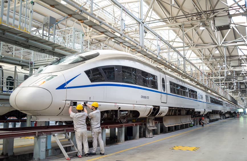 白天,在风驰电掣的动车组列车上,随车机械师拿着手电筒对车内卫生间、座椅等设施进行细致巡查;深夜,在西安动车段运用检修车间内,地勤机械师穿戴整齐、手拿工具,为驰骋了一整天的列车进行全面“体检”。