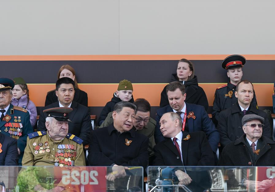 当地时间5月9日,俄罗斯举行盛大庆典,纪念苏联伟大卫国战争胜利80周年。国家主席习近平和来自世界20多个国家及国际组织领导人应邀出席庆典。新华社记者 谢环驰 摄