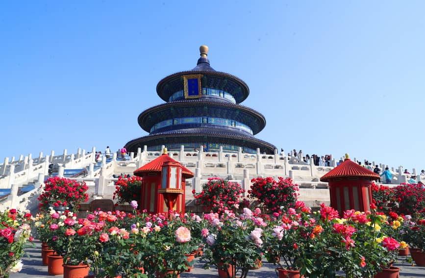北京天坛公园月季盛开迎客来