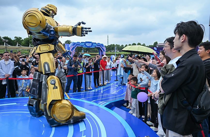 当日,“世界机器人嘉年华”活动在武汉花博汇景区举行。本次活动以近百台机器人为表演核心,机器人乐队、机器宠物、化妆机器人等陆续亮相,游客可以近距离与机器人接触,感受科技赋能文化与生活的魅力。