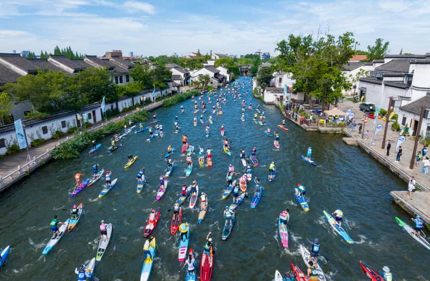 第七届南浔古镇桨板公开赛在浙江湖州举行